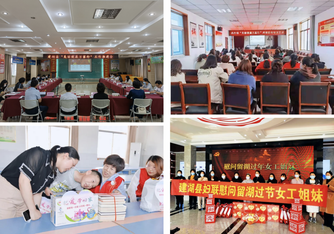 建湖县妇联联合社会各界力量开展“巾帼情系万家 暖冬年味正浓”“关爱服务儿童 把爱带回家”“为爱留湖 暖心过年”等各类巾帼志愿服务活动,先后举办女性健康讲座14场次,为单亲贫困母亲赠送平安健康险166份,走访慰问困境妇女儿童200余名,帮助2名重大疾病儿童争取社会救助1.5万元。持续实施“护苗助学”“牵手圆梦 宝贝不孤单-99公益日” 等公益项目,长期结对资助困境儿童365人次。