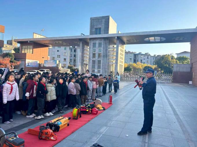 “逃生时一定要保持冷静,湿毛巾要捂住口鼻和下巴,弯腰是因为烟雾往上飘,贴近地面才能呼吸到更洁净的空气。”逃生演练结束后,来自消防救援站的 消防员结合刚才的演练情况,用通俗易懂的语言为师生们讲解火灾逃生的核心要点。他通过提问互动的方式,“火灾发生时能不能乘坐电梯?”“为什么要捂住口鼻?”瞬间调动起学生们的参与热情,现场应答声此起彼伏,消防安全知识在轻松的氛围中深入人心。