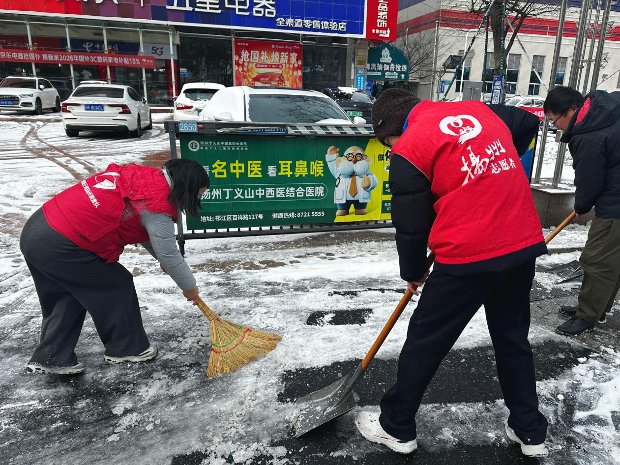 1月20日清晨,寒潮侵袭下的扬州城区部分路段积雪覆盖、路面湿滑,给居民日常出行和生活秩序带来诸多不便。国家统计局扬州调查队坚决贯彻扬州市委、市政府工作部署,闻令而动、迅速响应,第一时间组织志愿服务队奔赴包干路段,开展除冰扫雪志愿行动。