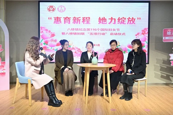 6日,扬中市八桥镇举行“惠育新程 她力绽放”纪念第116个国际妇女节活动,发布“奋进十五五 巾帼勇担当”五项行动。