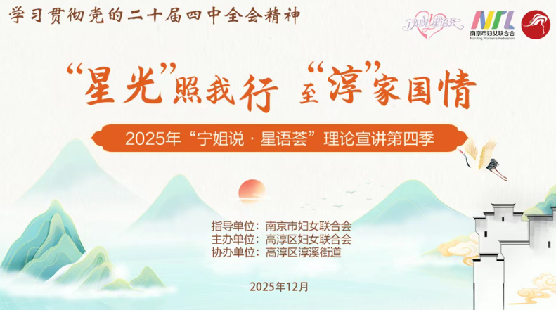 近日,南京市妇联与高淳区妇联共同主办的“宁姐说·星语荟”理论宣讲第四季活动在高淳区三湖家风馆“鸣锣开讲”,亦标志着“宁姐说·星语荟”理论宣讲2025年度圆满收官。