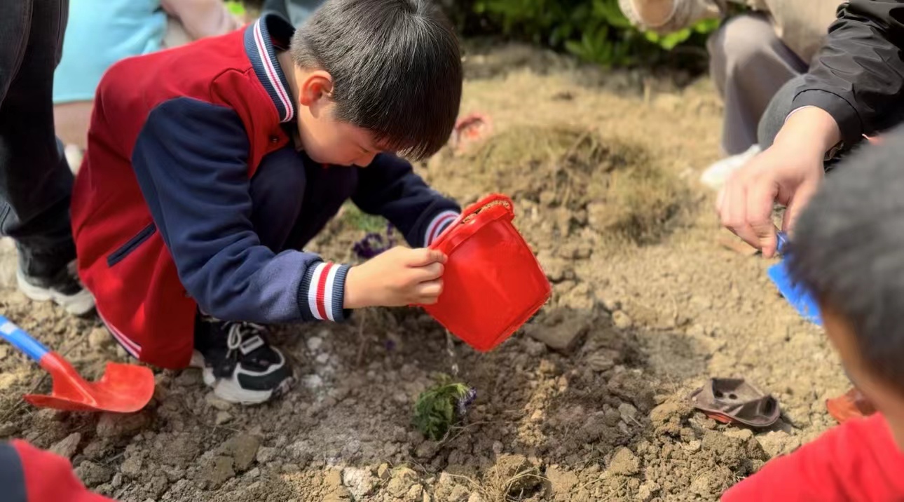温暖的午后,小朋友们在巾帼志愿者的帮助下,开启了小农夫种植活动。巾帼志愿者们先把地里的杂草清理干净,泥土松动一下,方便小朋友们栽种。小朋友们拿着小铲子,小心翼翼地将小花苗埋入巾帼志愿者预先挖出的小坑内,再用手轻轻地抓一些泥土铺上压紧,每一个小朋友都非常认真。种完小花,巾帼志愿者帮小朋友们接水,他们拎着小水桶细心地浇灌着刚刚种下的花苗,仿佛在照顾自己的小宝贝一样,等待它们茁壮成长。